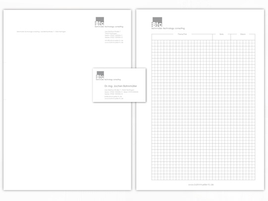 und diverse Drucksachen für "Bahnmüller.technology.consulting" aus Nürtingen.